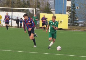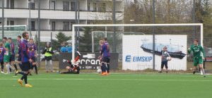 Það var því eiginlega gegn gangi leiksins þegar Leiknir náði að komast yfir á 37. mín. Það var svo Arnar Helgi Magnússon sem jafnaði fyrir okkur með frábæru marki eftir hornspyrnu skömmu síðar og staðan því 1-1 í hálfleik.