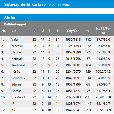 Deildarkeppni lokið: Úrslitakeppnin hefst 4. apríl